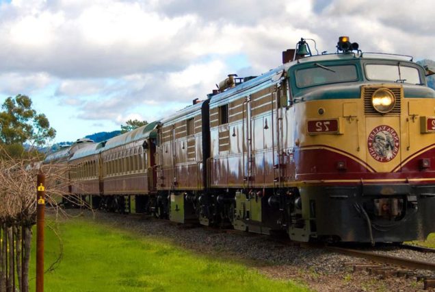 Из винодельни мы поедем другой дорогой, с обратной стороны горной гряды; уже по самой долине Напа. Сравним пейзажи двух главных винодельческих долин, а в конце концов нас ждёт… особый винный поезд 🚂 Это развлечение для истинных сибаритов: мы проедем вдоль долины на старинном паровозе, да-да, настоящем паровом локомотиве с теми-самыми пулмановскими интерьерами 1915 года! Поездка, кроме роскошных ландшафтов, включает в себя отменный ужин, дополненный, естественно, винами долины 😋